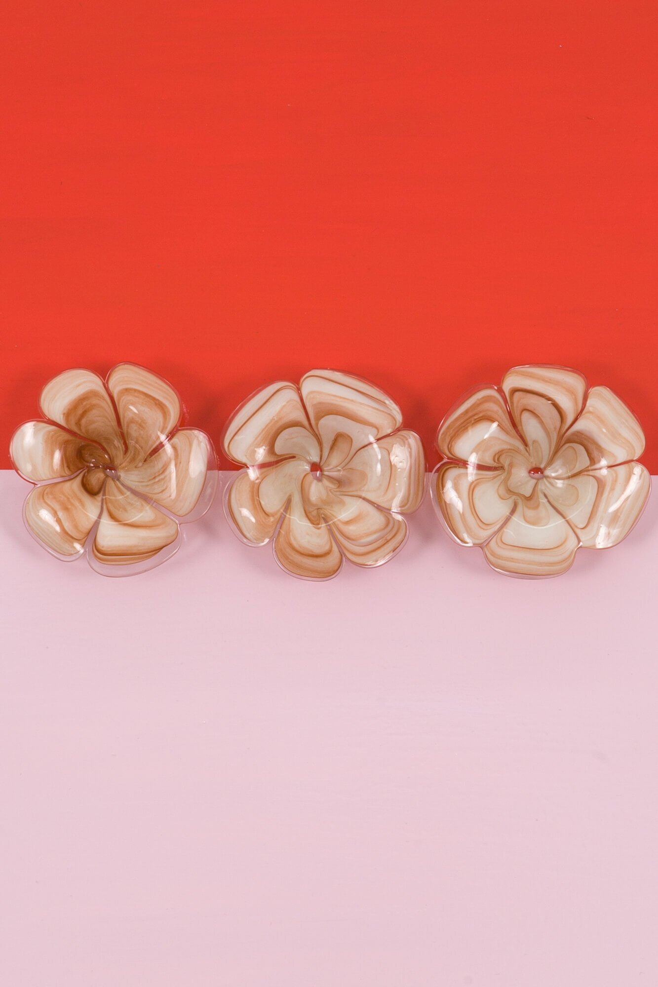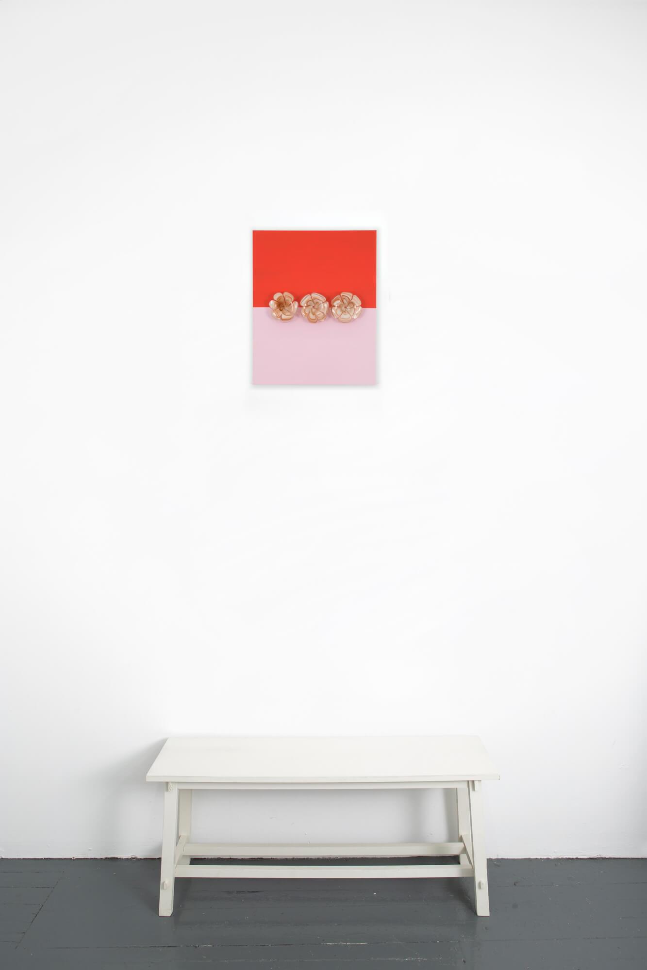 Acrylic painting on 1-1/2″ deep cradled birch wood panel adorned with antique Murano Glass flower bobeches.