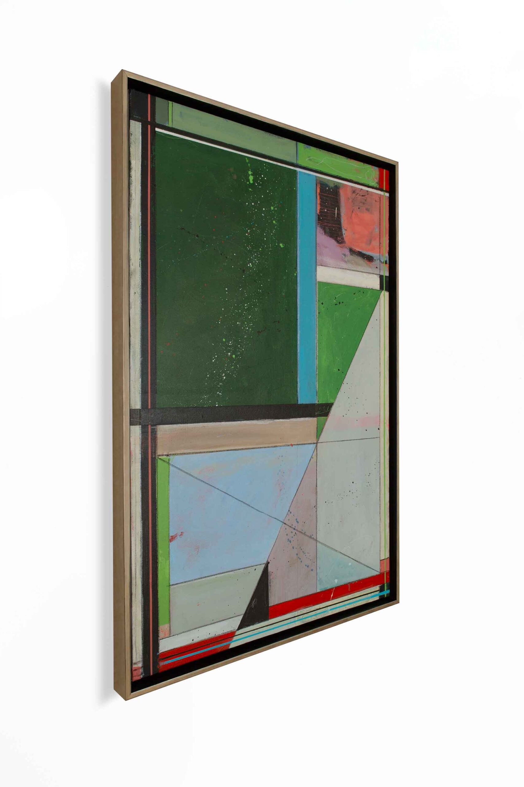 Original mixed media painting on canvas. Custom framed in a simple gold float frame. Signed on the back.