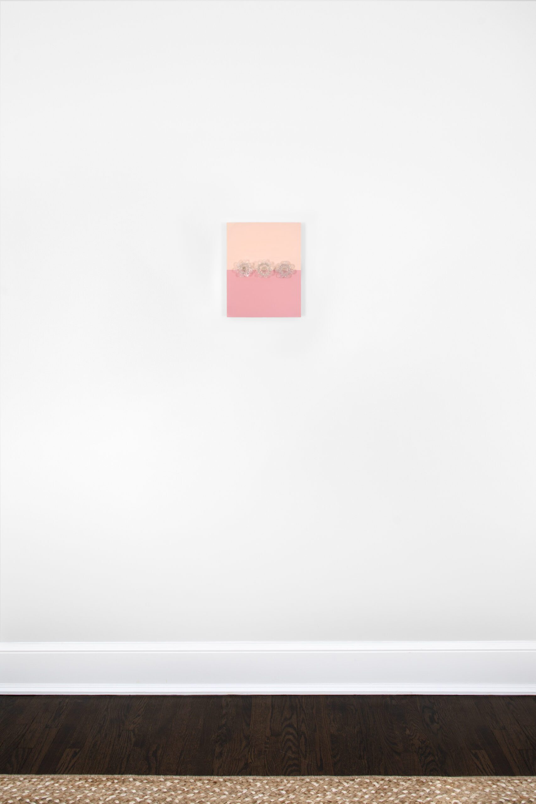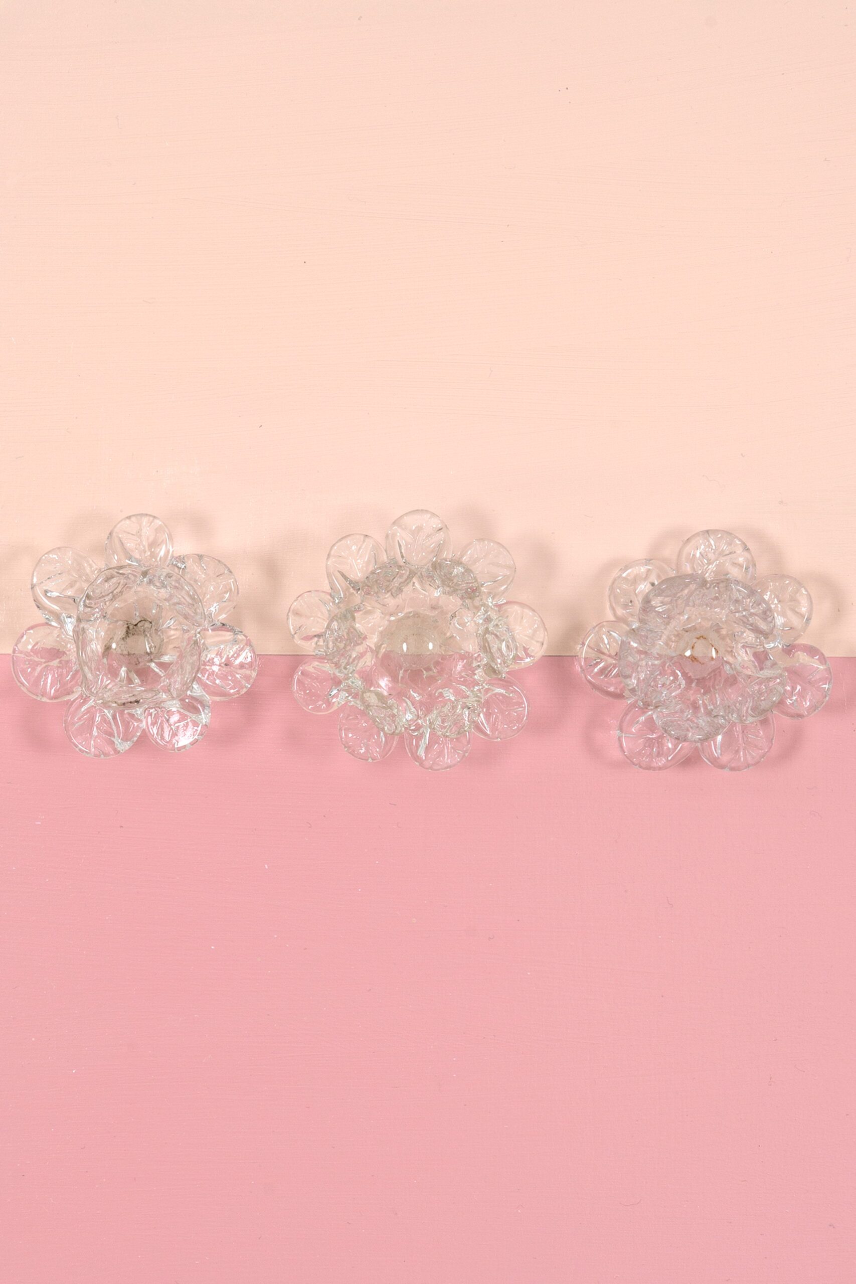 Acrylic painting on 1-1/2″ deep cradled birch wood panel adorned with antique Murano Glass tulip bobeches.