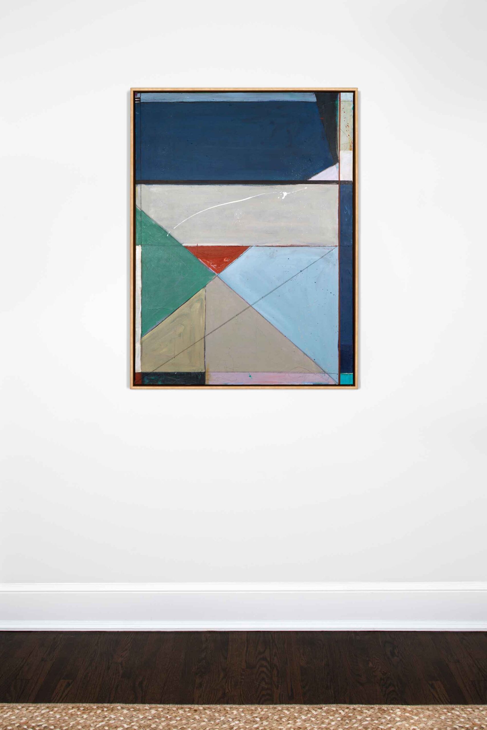 Original mixed media painting on canvas. Custom framed in a simple gold float frame. Signed on the back.